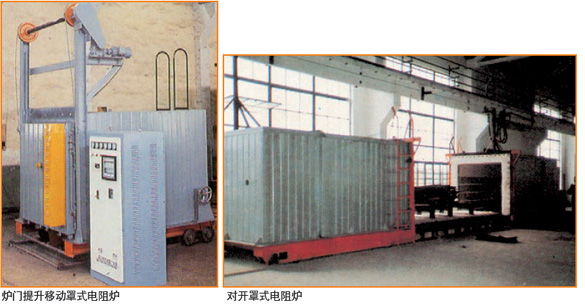 3、结构型式多样:炉门提升移动罩式电阻炉、对开式电阻炉、悬挂式连续电阻炉、地坑式电阻炉、轧辊专用电阻炉、钟罩式电阻炉等。