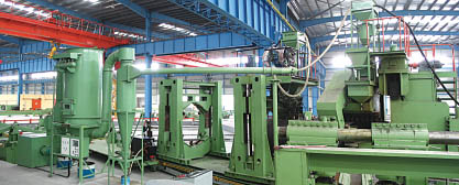 本系统由特制的高压离心通风机、新的脉冲袋式除尘器、料桶、磁选机、接管、电气控制盒等组成,具有风机效率高、噪声低、气体处理能力强、净化效果好、工作可靠、使用寿命长等特点,能满足螺旋钢管、H型钢焊接中焊剂的循环使用,提高生产效率,是新一代焊剂回收装置。该装置在宝鸡石油等五大石油钢管厂广泛应用,获得了用户的肯定和赞誉,且已随钢管机组配套出口至美国、印度尼西亚、菲律宾等国家。
